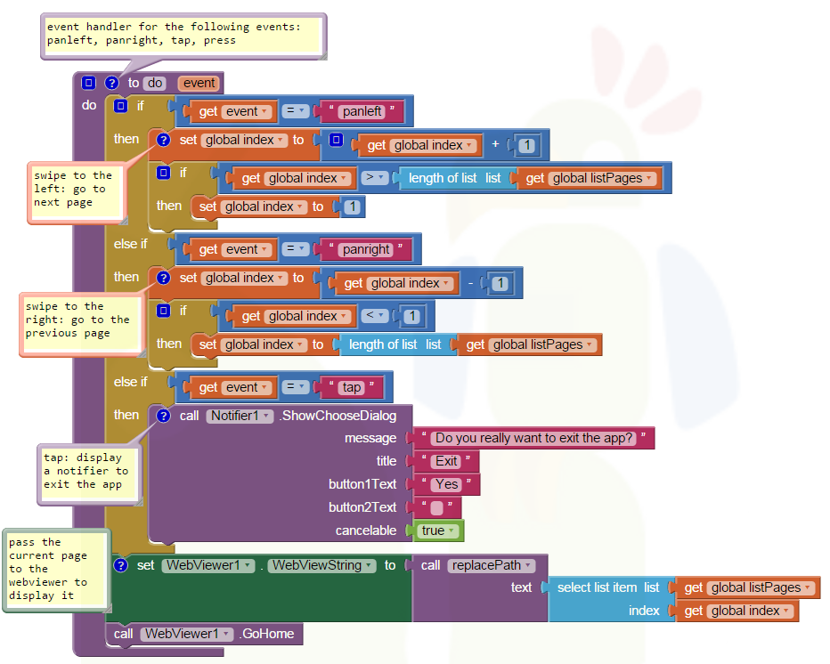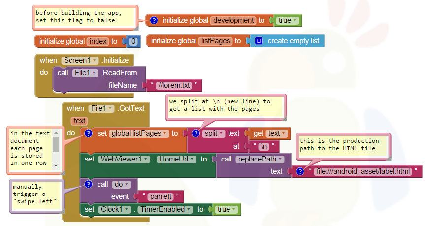 After buying the example, you will see, how the HTML/Javascript file looks like. This file is essential for the app to be able to work correctly, but you do not have to worry about: for your own app you only have to provide the text file with some HTML tags.