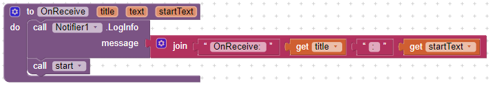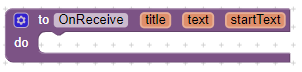 and provides the new OnReceive event handler (which looks like a procedure). By default the event handler is located in Screen1.