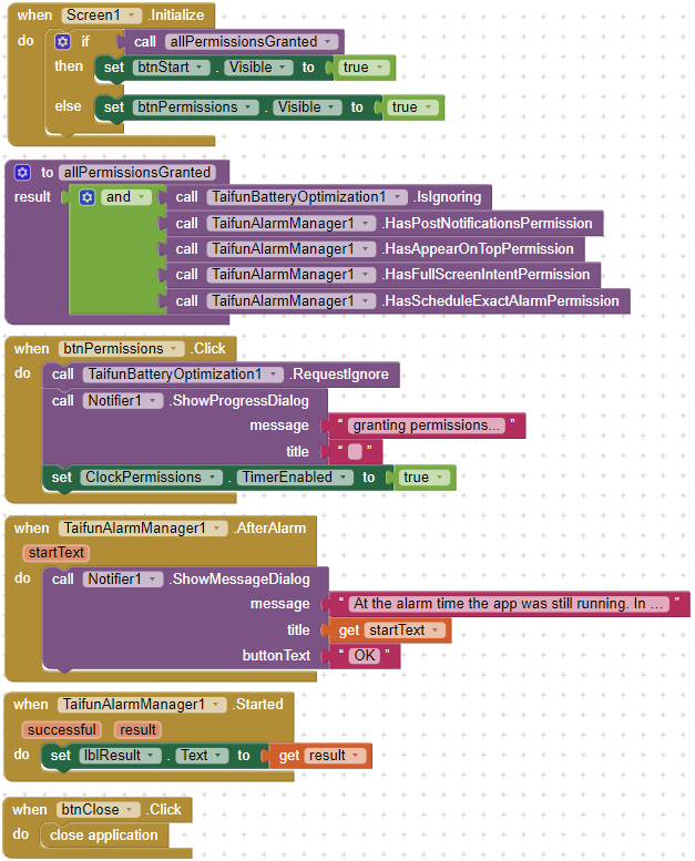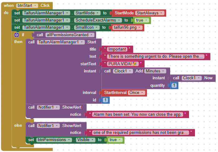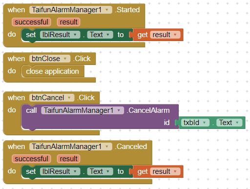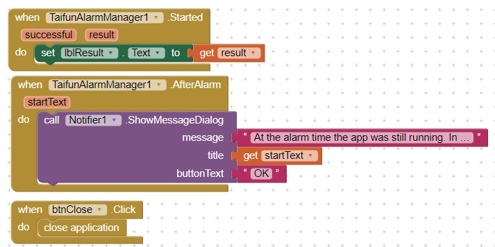 - alarmmanager.aia: example project to show the main features of the extension in startMode OnlyNotification