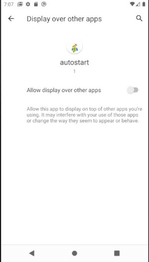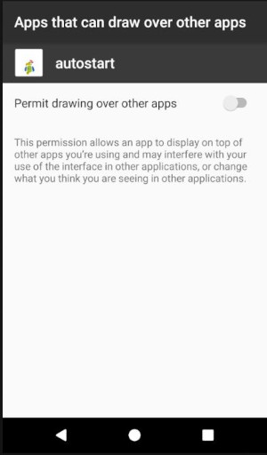 Note: For option 3 (Start Always): additionally the user needs to grant "Appear On Top" permission.