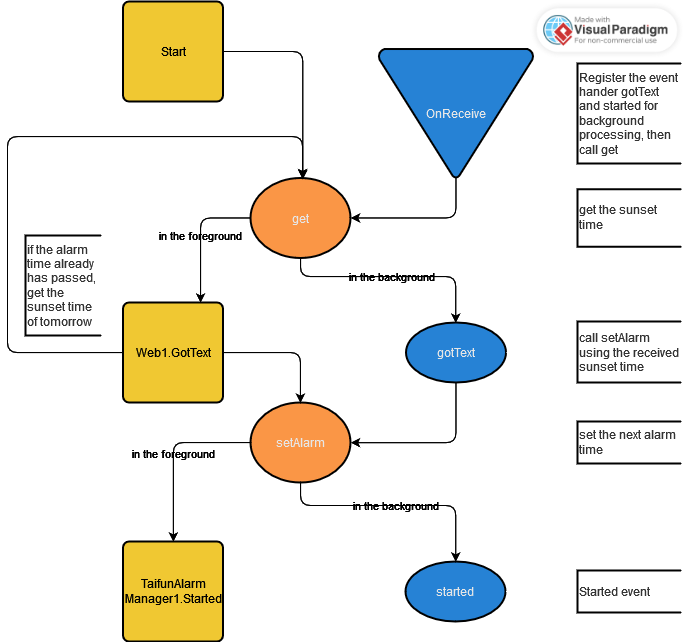 The background event handler will be called from Itoo from the background after an alarm occurred.