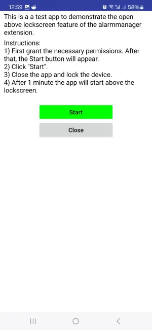 This is a a test app to demonstrate the open above lockscreen feature of the alarmmanager extension.