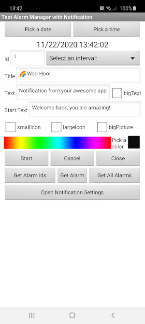 Alarm Manager Extension to send a notification or autostart the app at a given time even above the lockscreen