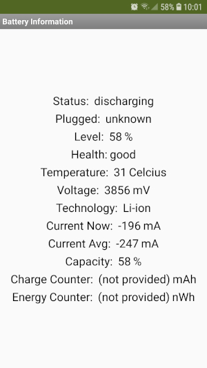 March 11th, 2019: Version 2: CurrentNow, CurrentAvg, Capacity, ChargeCounter, EnergyCounter, Technology added