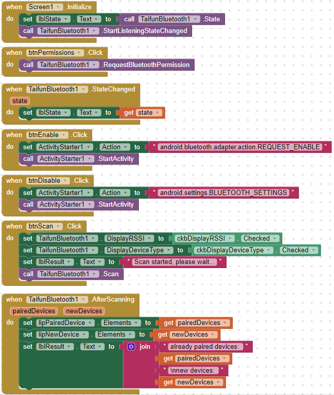 Nov 4th, 2022: Version 5: SDK31 update: permissions android.permission.BLUETOOTH_CONNECT, android.permission.BLUETOOTH_SCAN and android.permission.BLUETOOTH_ADVERTISE added, new method RequestBluetoothPermission added, method MacAddress removed: to protect user privacy, on Android versions 6 and higher, access to the own MAC address is restricted to system apps. Third-party apps can't access it anymore.
