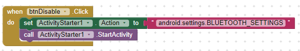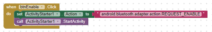You should use android.bluetooth.adapter.action.REQUEST_ENABLE instead.