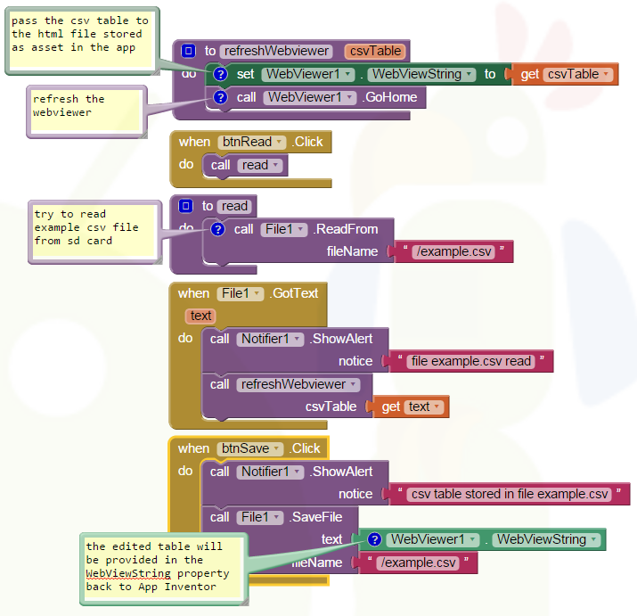 Using this example, you can load your example csv table from the root directory of your sd card. The name of the file must be example.csv.