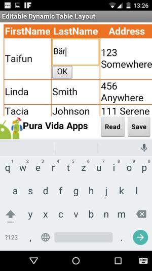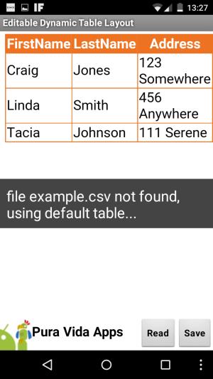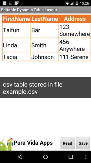 The csv table can have any number of columns or rows. You can edit some cells and store it back to your sd card.