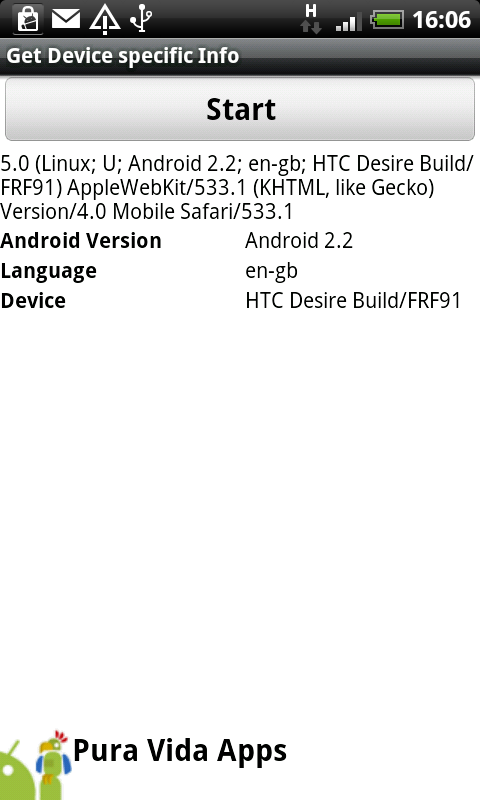 using an embedded HTML/JavaScript document which supplies some info from the Navigator object.
