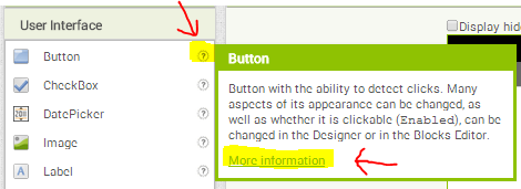 In the Designer window you can get a short description for the components, just click onto the question mark.