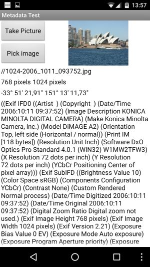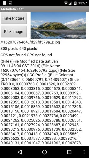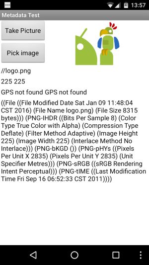 For instance /myImage.jpg will get the metadata of file mnt/sdcard/myImage.jpg. To get the metadata of an image file uploaded as