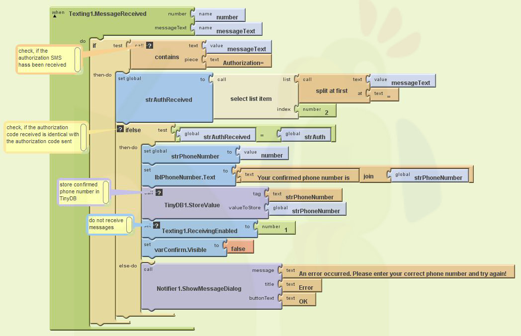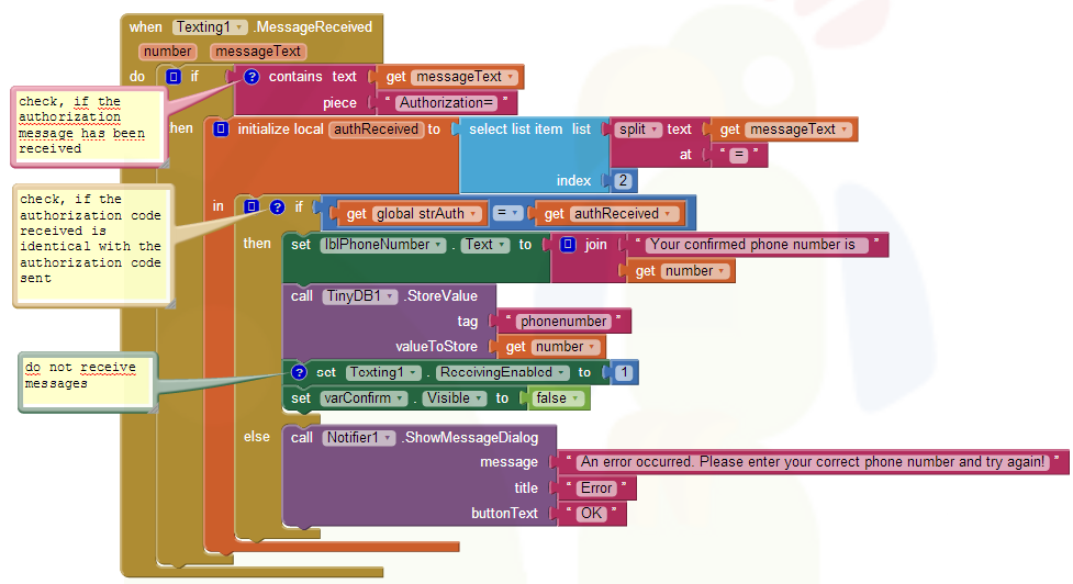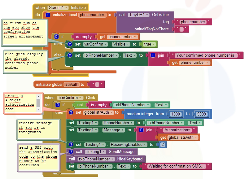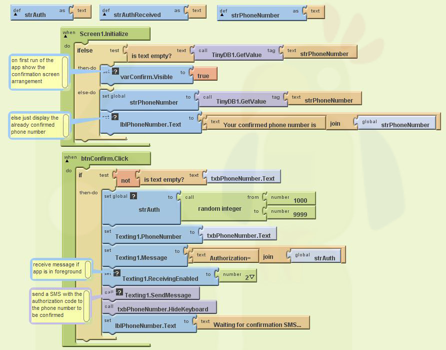 Version 1.1: Update of the Texting1.ReceivingEnabled blocks because of the new App Inventor Version 133.