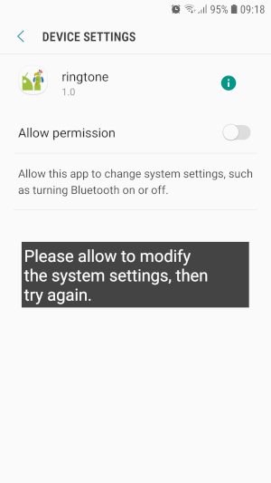 android.permission.WRITE_SETTINGS. Before testing make sure the target directory to copy the soundfiles to is empty.